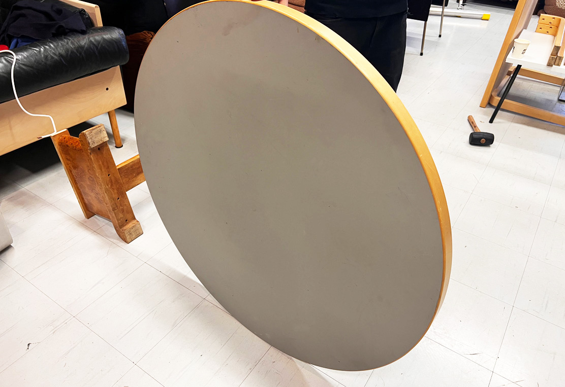 Alvar Aaltoの「90A Round Dining Table Gray リノリウム φ100cm」。